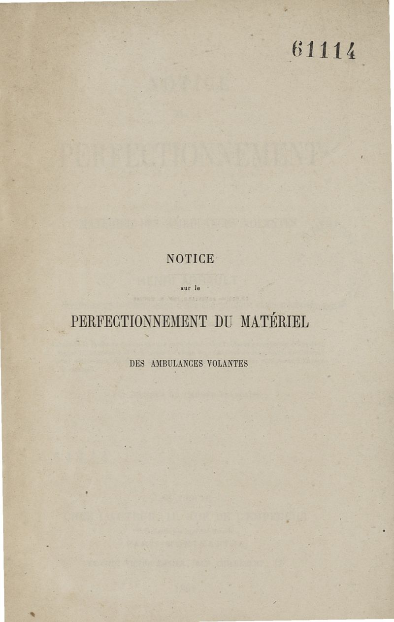 Notice sur le perfectionnement du matériel des ambulances volantes