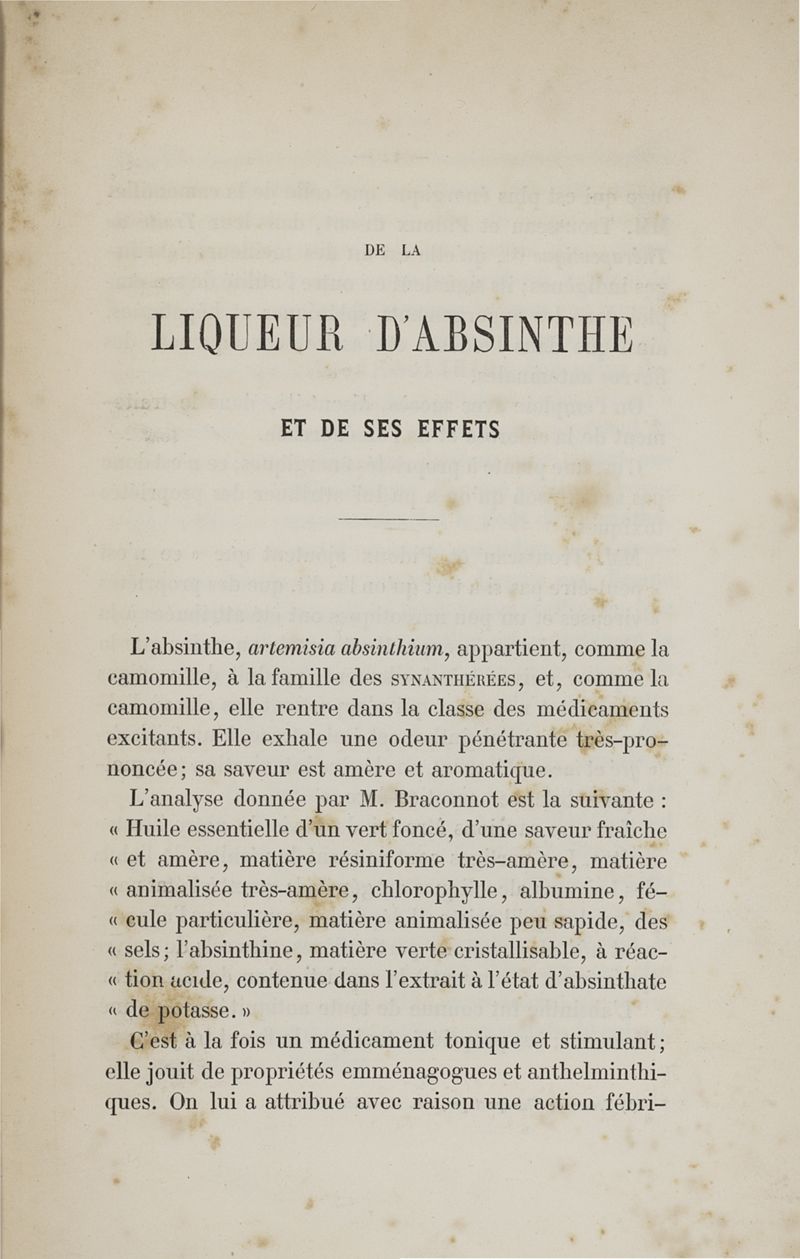 De la liqueur d'absinthe et de ses effets