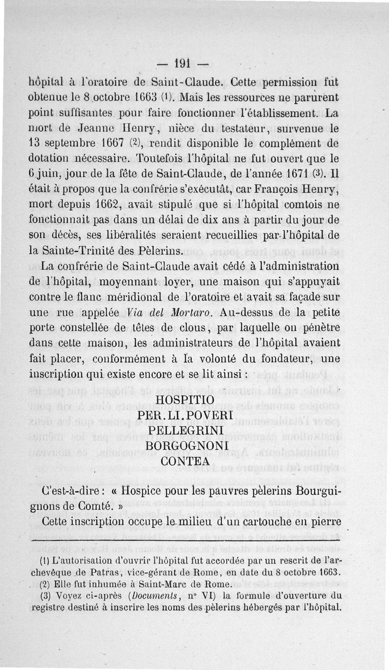 La Confrérie, l'église et l'hopital de Saint-Claude des Bourguignons de la Franche-Comté à Rome. Notice historique suivie de documents par Auguste Castan,...