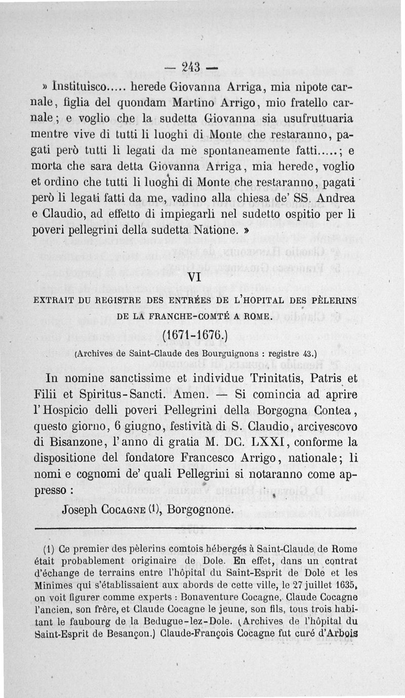 La Confrérie, l'église et l'hopital de Saint-Claude des Bourguignons de la Franche-Comté à Rome. Notice historique suivie de documents par Auguste Castan,...