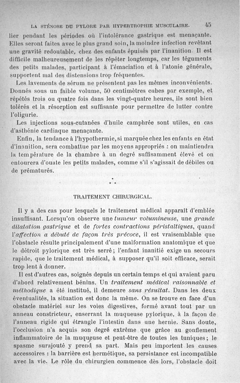 La sténose du pylore, par hypertrophie musculaire chez les nourrissons