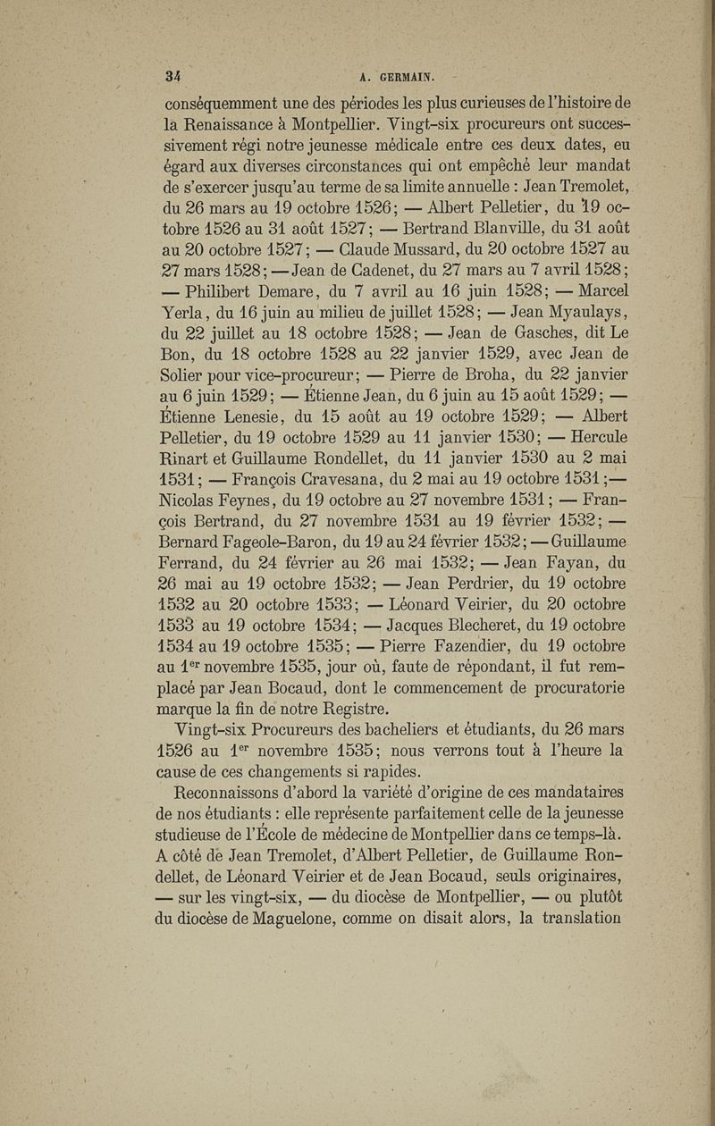Les étudiants de l'école de médecine de Montpellier au XVIe siècle, étude historique sur le "Liber procuratoris studiosorum"