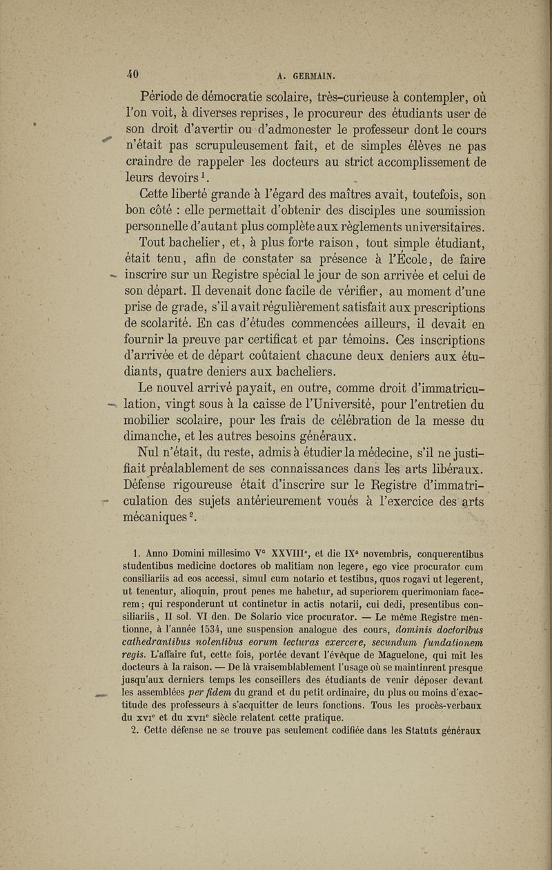 Les étudiants de l'école de médecine de Montpellier au XVIe siècle, étude historique sur le "Liber procuratoris studiosorum"