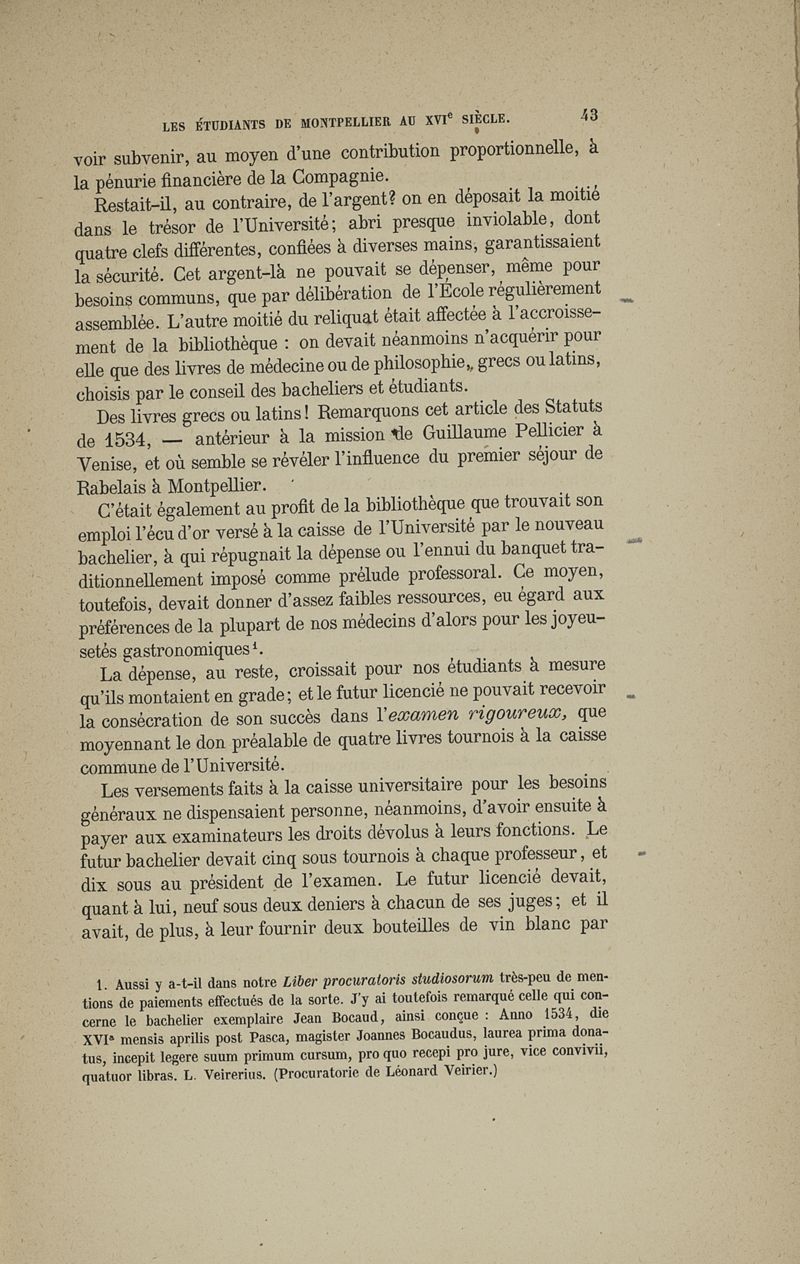 Les étudiants de l'école de médecine de Montpellier au XVIe siècle, étude historique sur le "Liber procuratoris studiosorum"