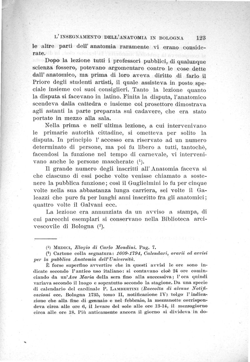 L'insegnamento dell' anatomia in Bologna prima del secolo XIX