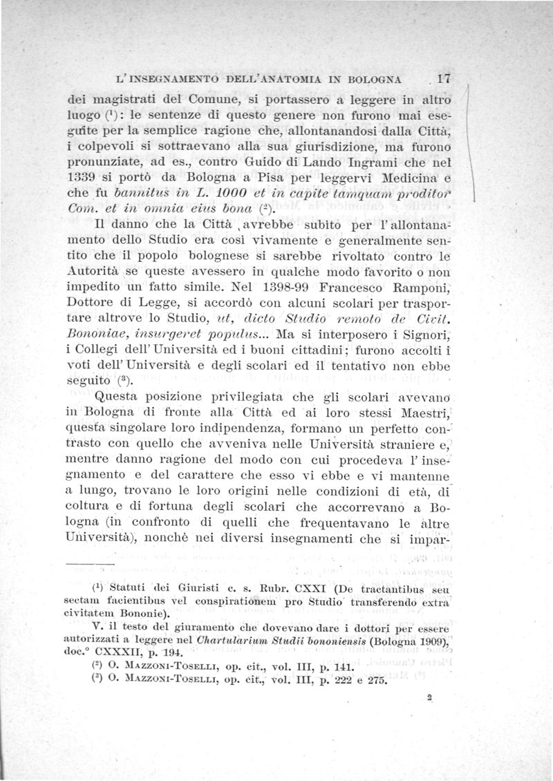 L'insegnamento dell' anatomia in Bologna prima del secolo XIX