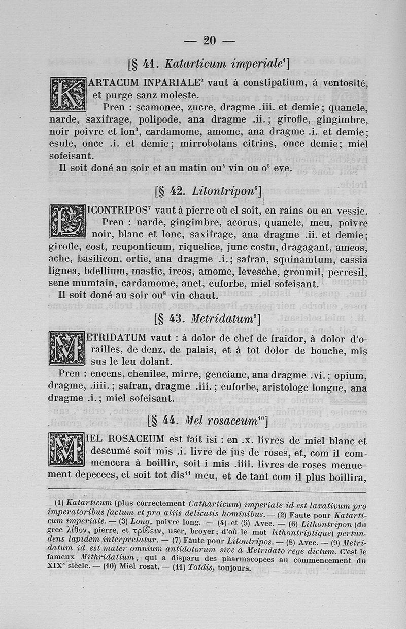 L'antidotaire Nicolas. Deux traductions françaises de l'Antidotarium Nicolai. L'une du XIVè siècle suivie de quelques recettes de la même époque et d'un glossaire. L'autre du XVè siècle incomplète. Publiées d'après les manuscrits français 25327 et 14827 de la Bibliothèque nationale
