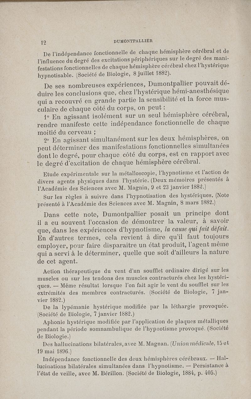 L'oeuvre scientifique de Dumontpallier