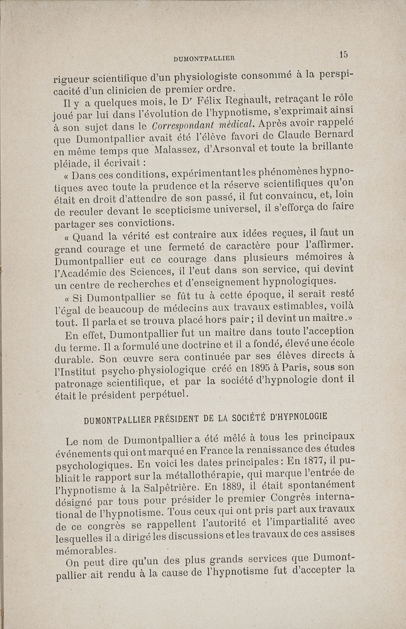 L'oeuvre scientifique de Dumontpallier