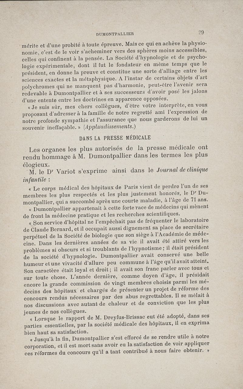 L'oeuvre scientifique de Dumontpallier