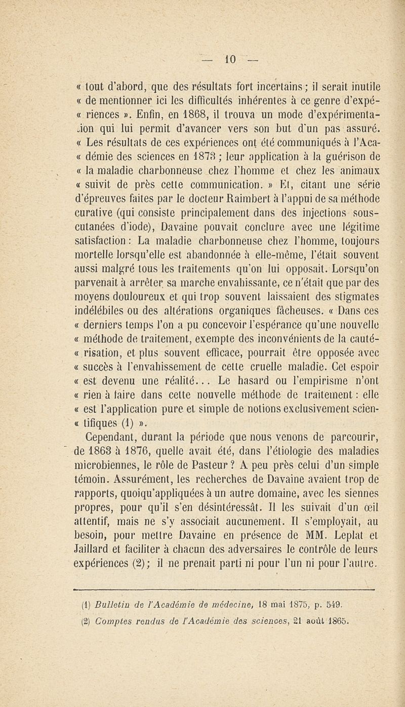 Le docteur C.-J. Davaine - membre de l'Académie de médecine (1812-1882)