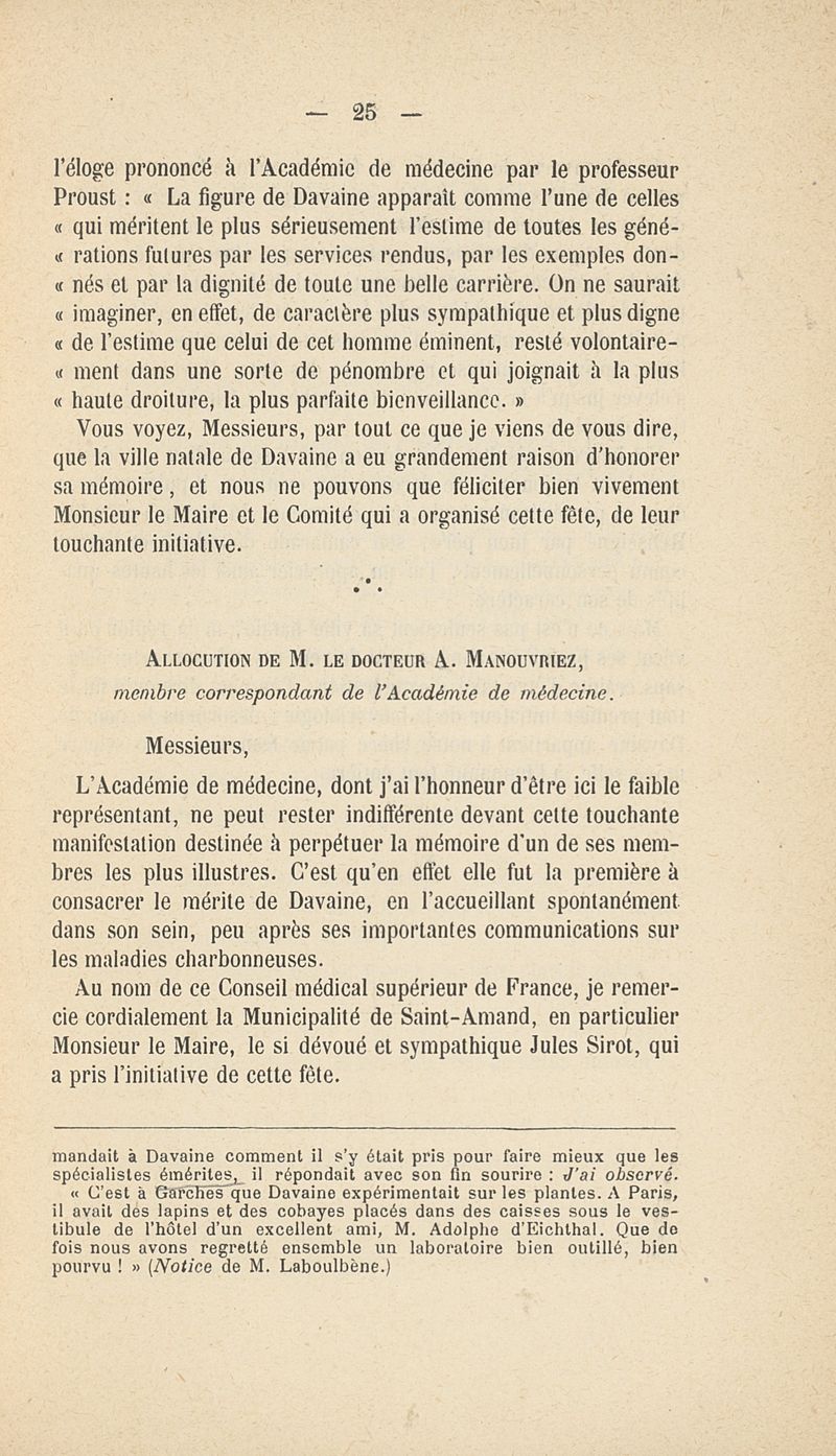 Le docteur C.-J. Davaine - membre de l'Académie de médecine (1812-1882)