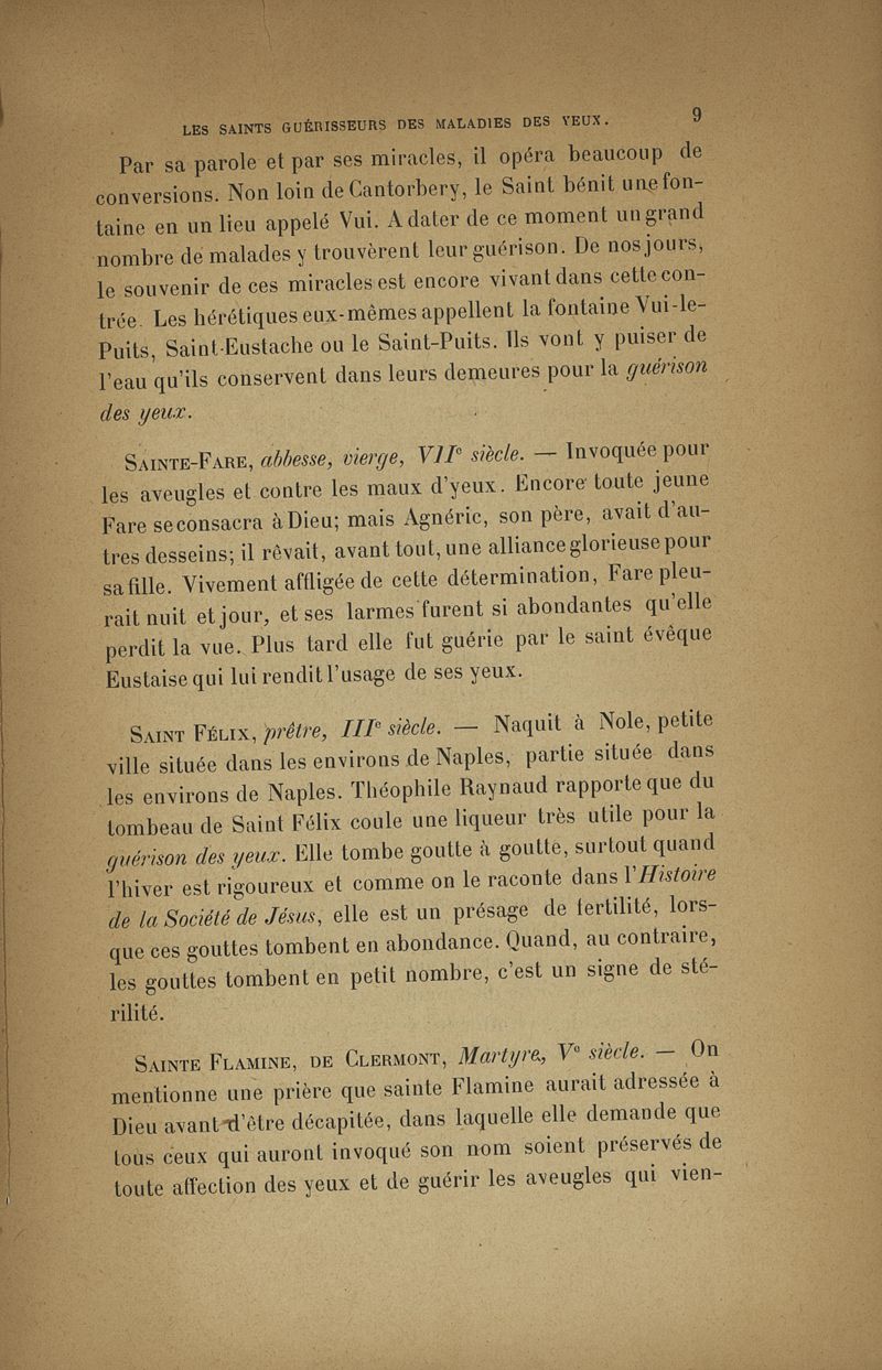 Les saints guérisseurs des maladies des yeux d'après Louis du Broc de Segange