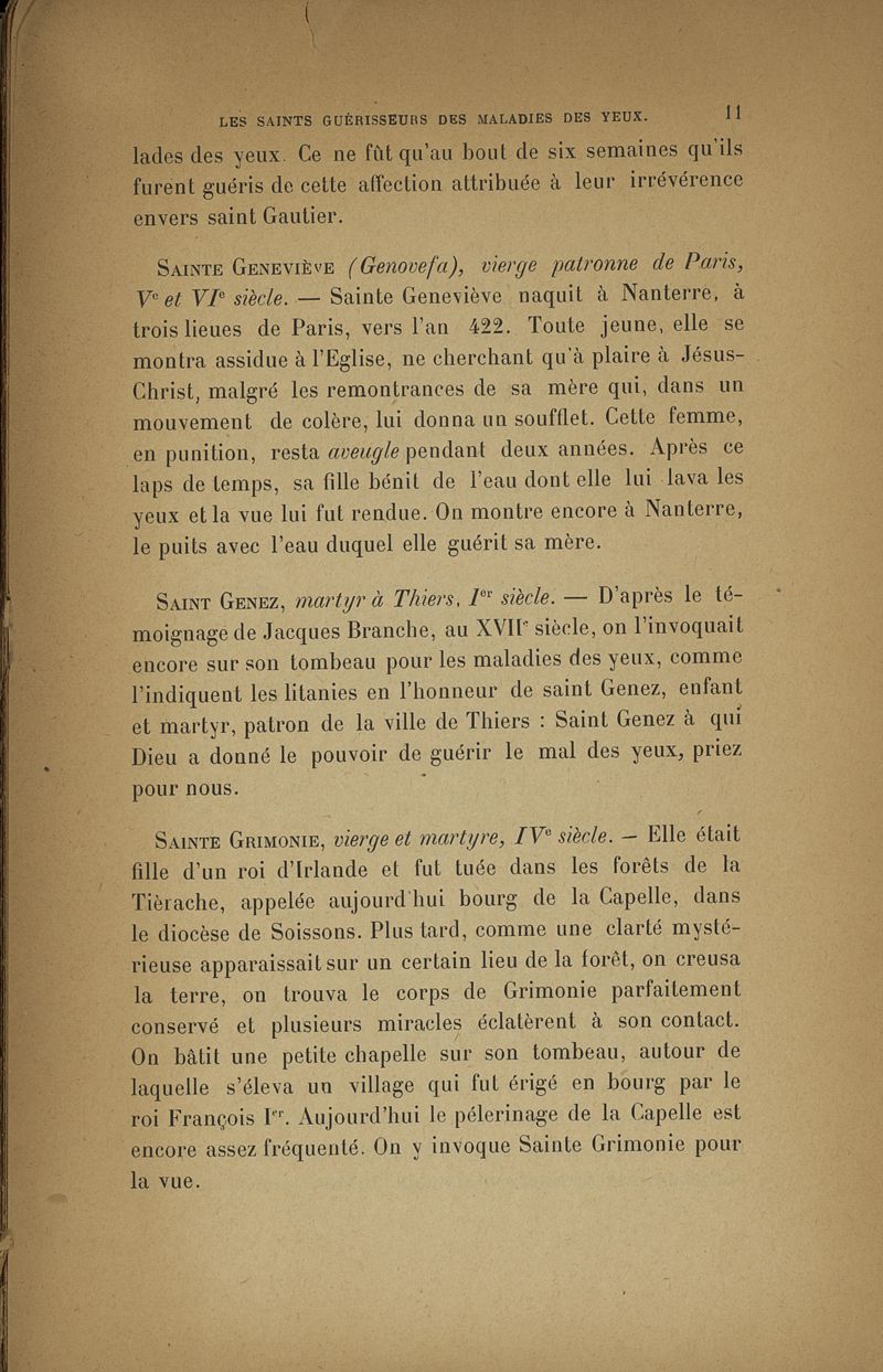 Les saints guérisseurs des maladies des yeux d'après Louis du Broc de Segange