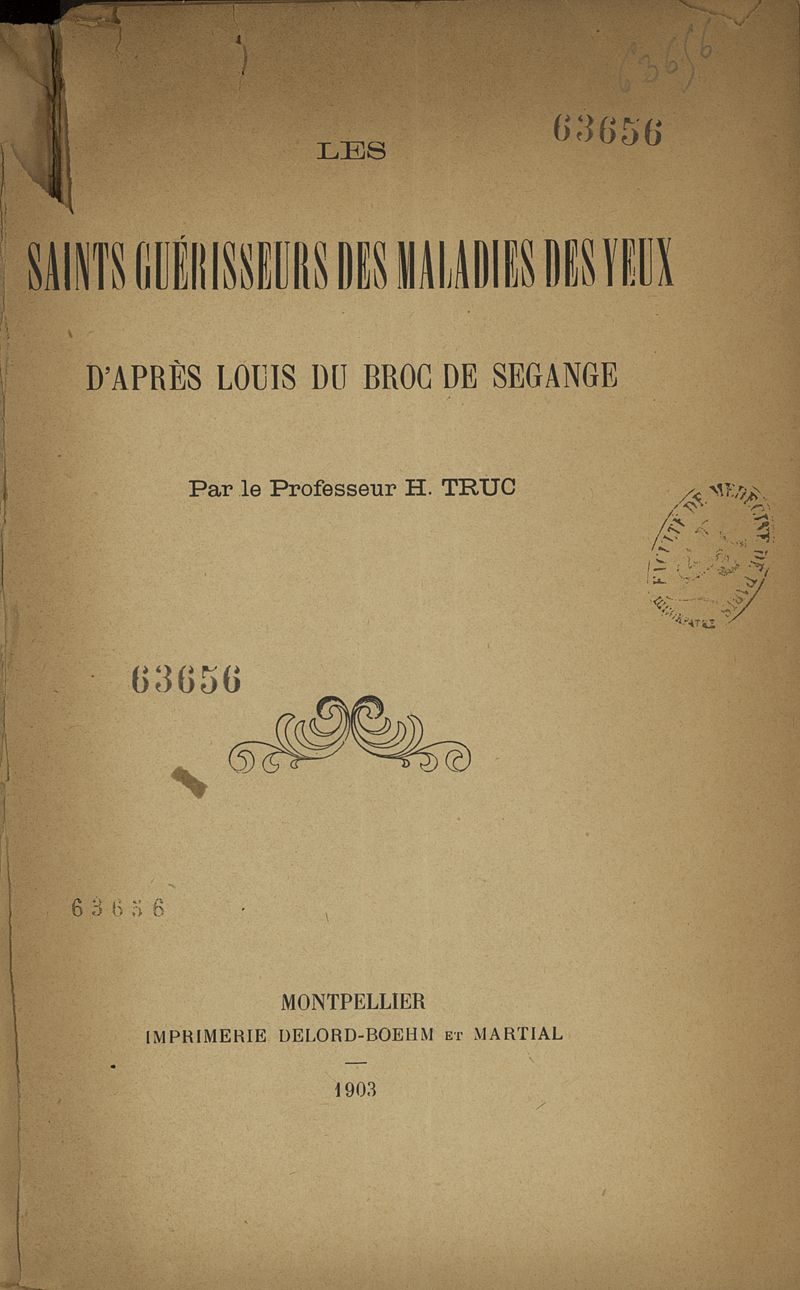 Les saints guérisseurs des maladies des yeux d'après Louis du Broc de Segange