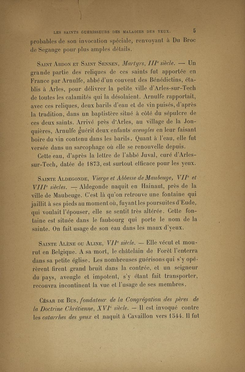 Les saints guérisseurs des maladies des yeux d'après Louis du Broc de Segange
