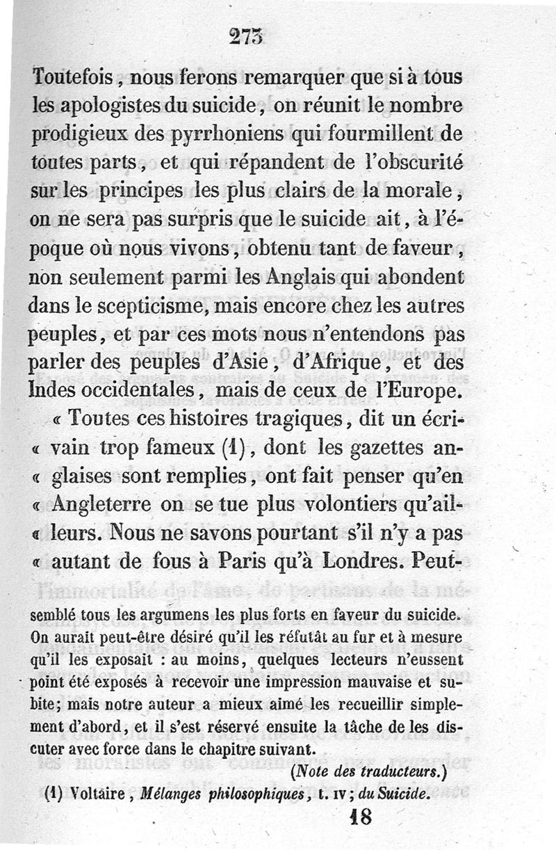 Histoire critique et philosophique du suicide ; trad. de l'italien par M.G. Armellino et M.L.F. Guérin