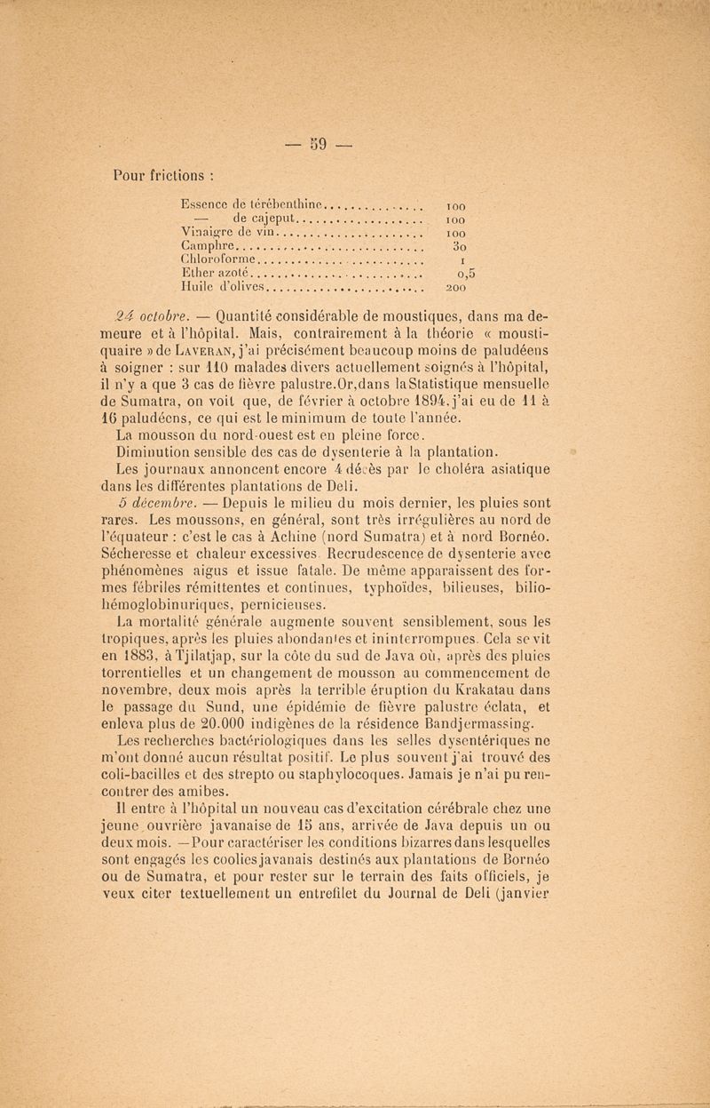 Contributions à la géographie médicale de l'Archipel Malais