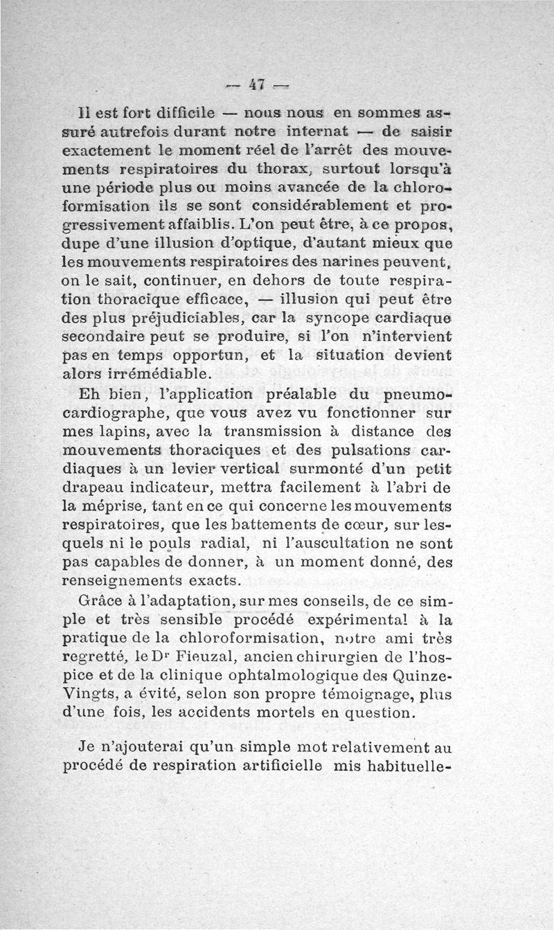 Du mécanisme physiologique des accidents et de la mort par le chloroforme : indications rationnelles des moyens de les prévenir