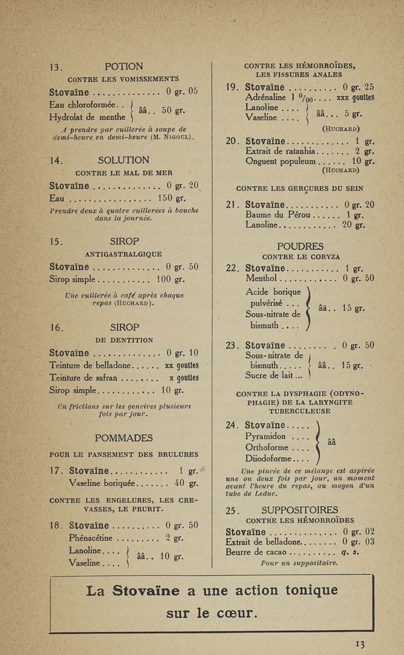 La stovaïne. Ses propriétés et ses emplois