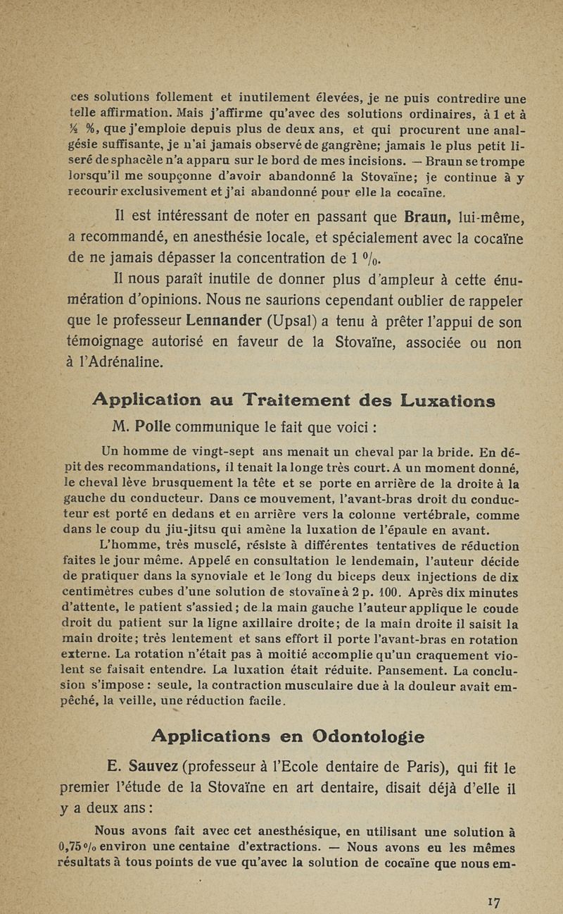 La stovaïne. Ses propriétés et ses emplois