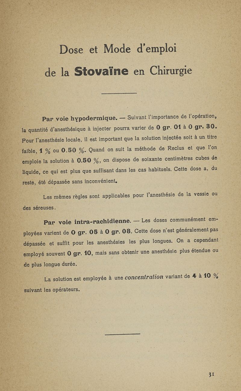 La stovaïne. Ses propriétés et ses emplois