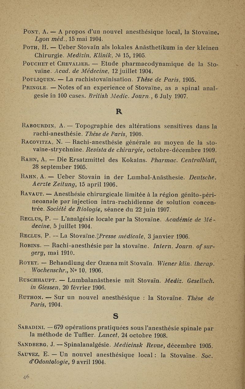 La stovaïne. Ses propriétés et ses emplois