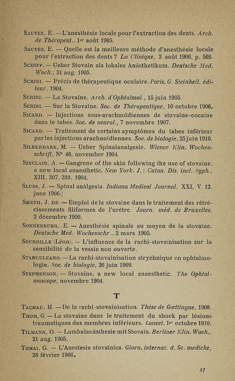 La stovaïne. Ses propriétés et ses emplois