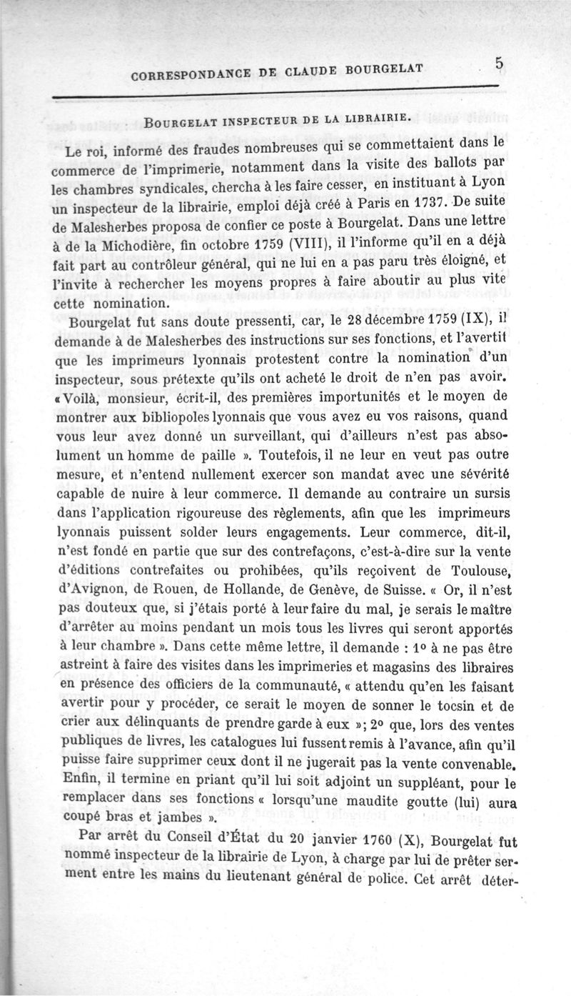 Correspondance de Claude Bourgelat. Première partie