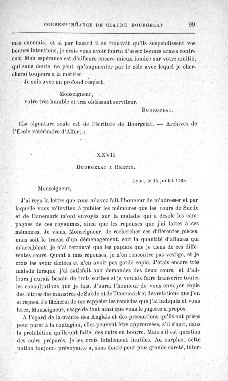 Correspondance de Claude Bourgelat. Deuxième partie