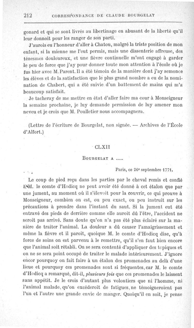 Correspondance de Claude Bourgelat. Deuxième partie