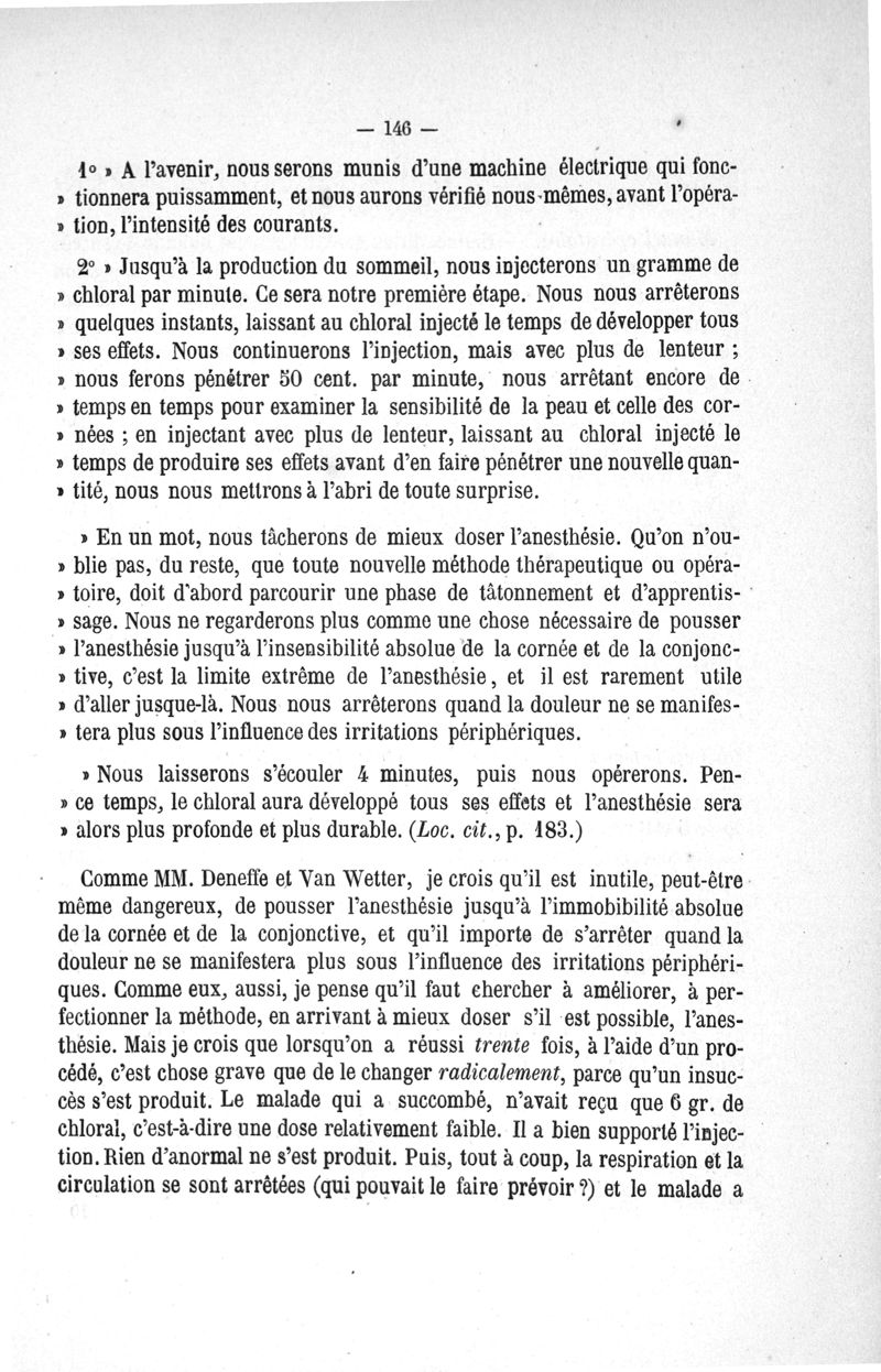 Etudes cliniques sur l'anesthésie chirurgicale par la methode des injections de chloral dans les veines