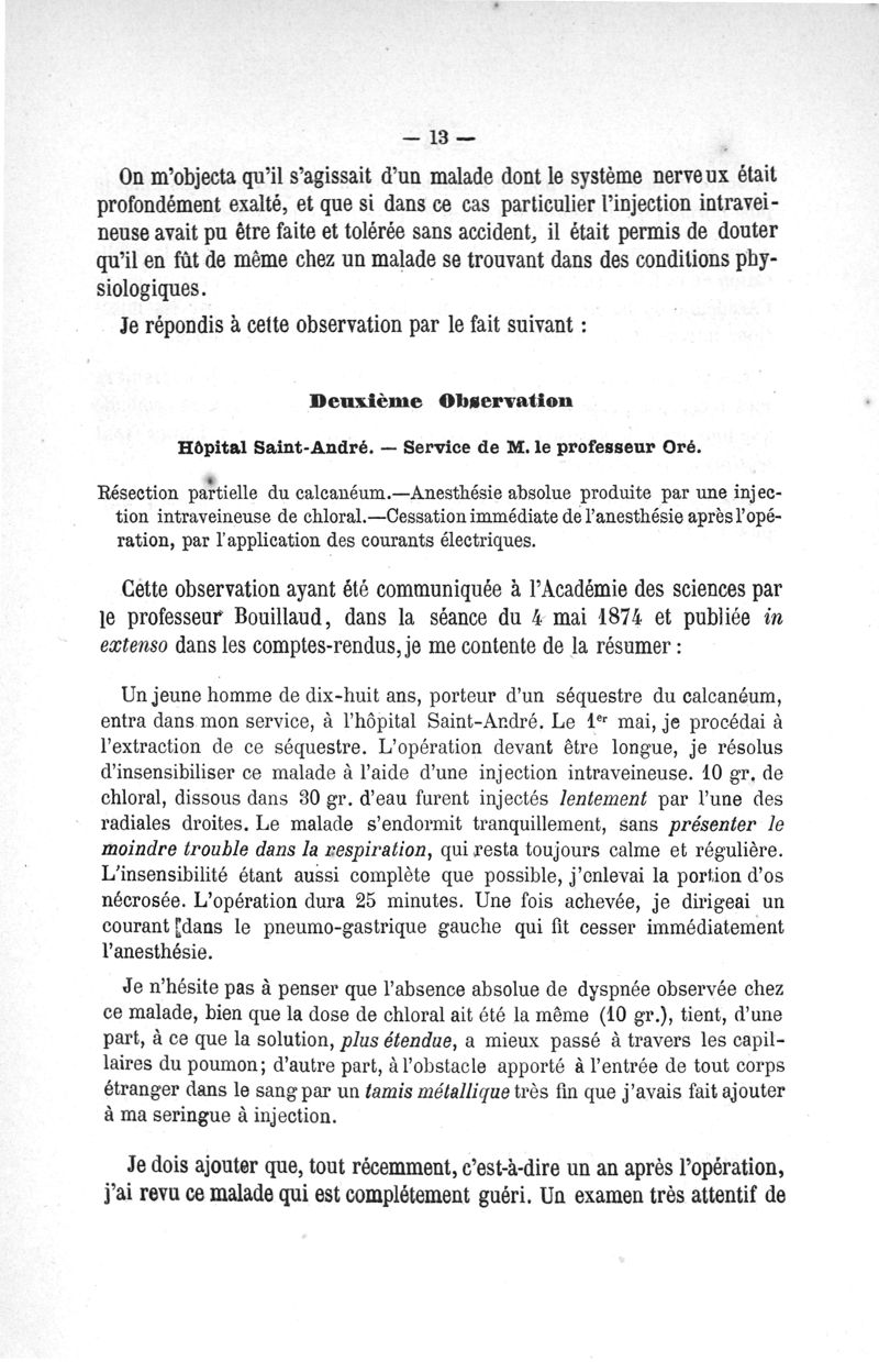Etudes cliniques sur l'anesthésie chirurgicale par la methode des injections de chloral dans les veines