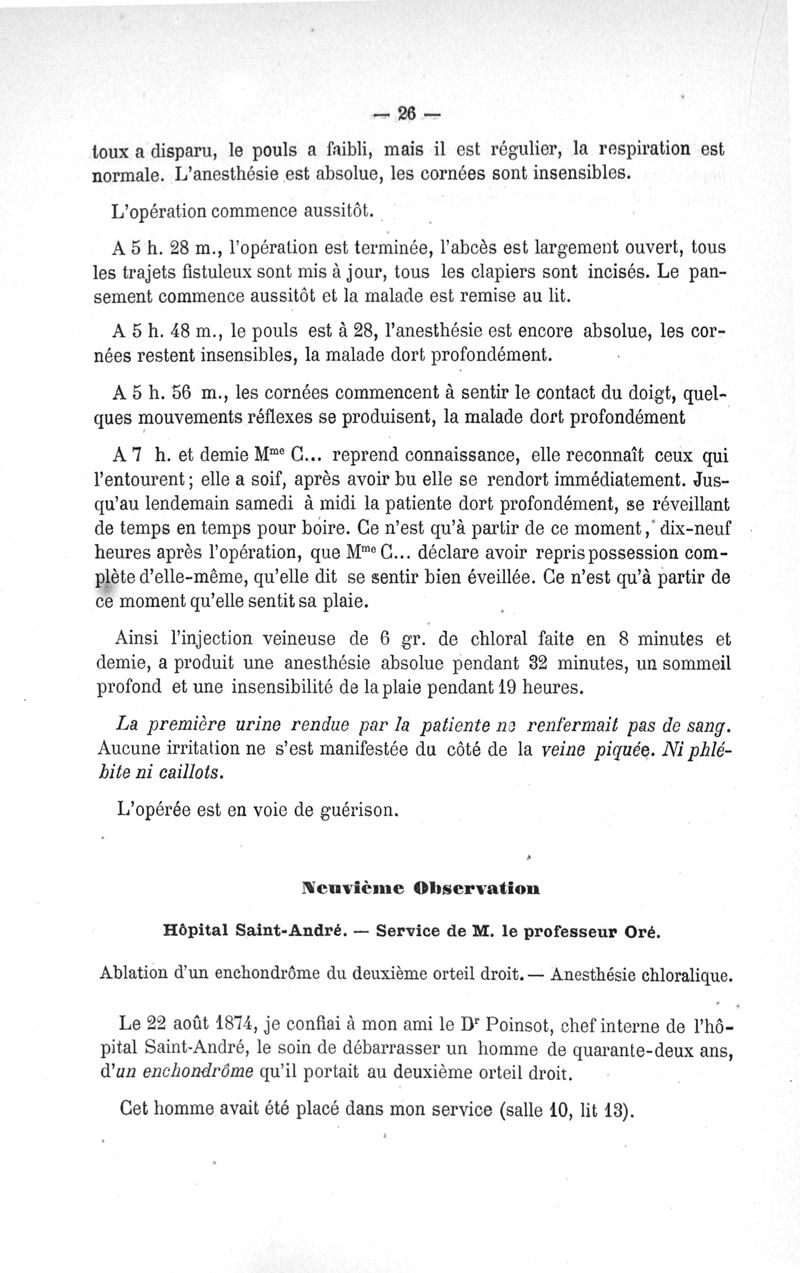 Etudes cliniques sur l'anesthésie chirurgicale par la methode des injections de chloral dans les veines