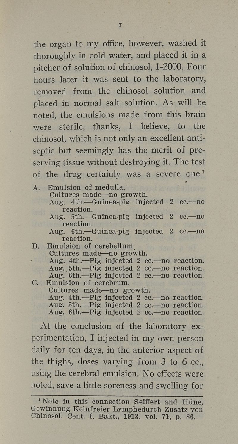 Experiments with emulsions of organs taken from the dead human body and sex-glands of lower animals