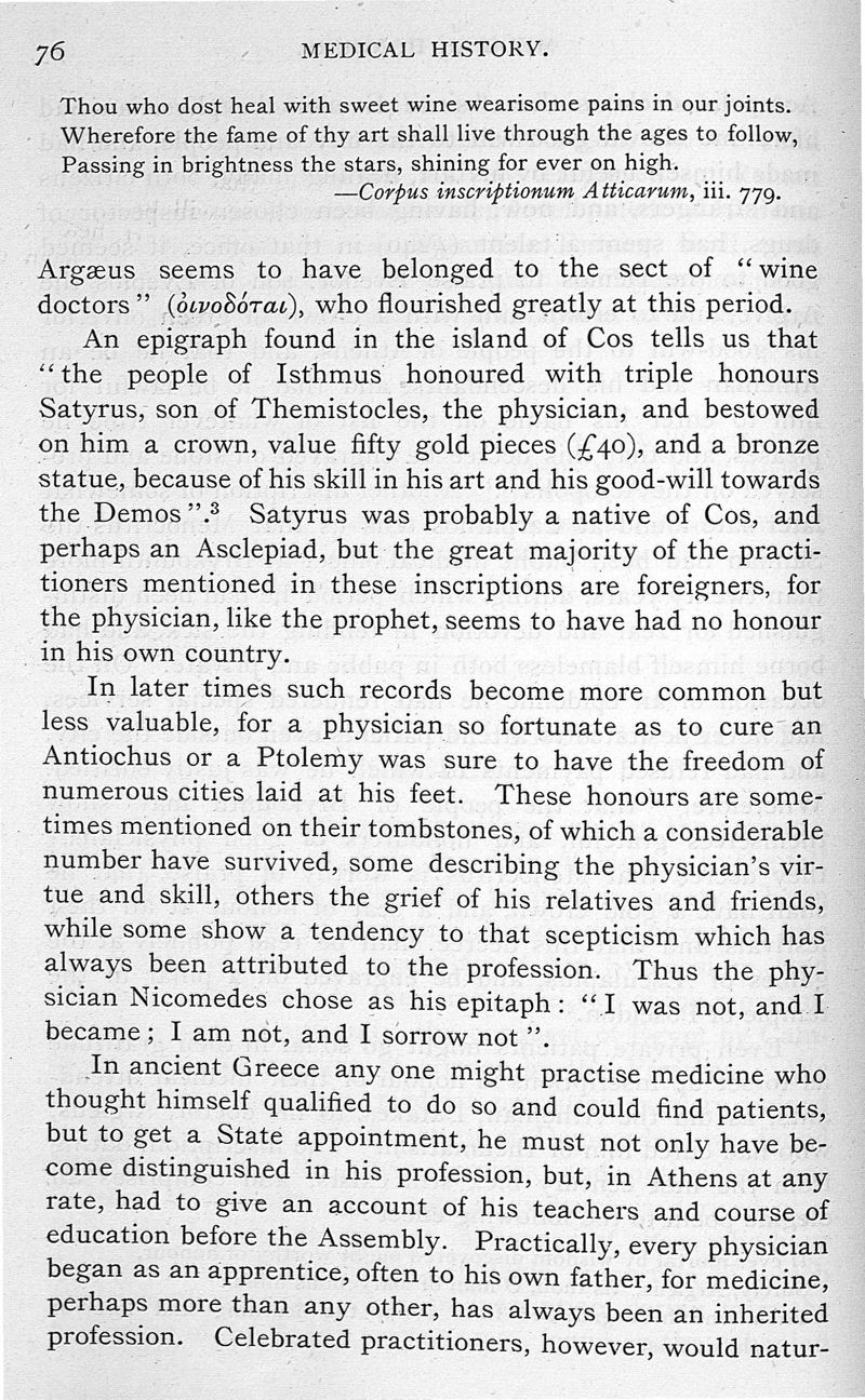 Medical history from the earliest times