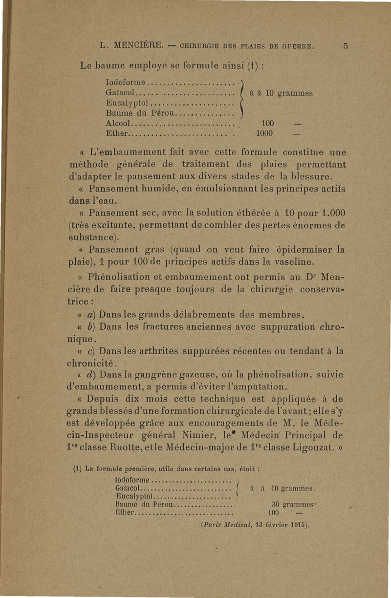 Méthode conservatrice en chirurgie de guerre telle qu'elle découle de la pratique de l'embaumement et de la phénolisation