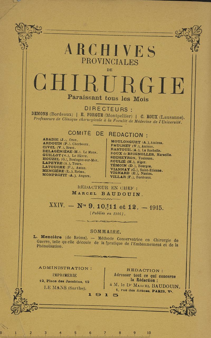 Méthode conservatrice en chirurgie de guerre telle qu'elle découle de la pratique de l'embaumement et de la phénolisation