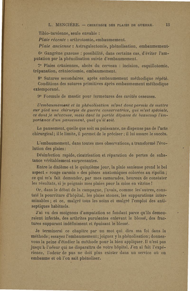 Méthode conservatrice en chirurgie de guerre telle qu'elle découle de la pratique de l'embaumement et de la phénolisation