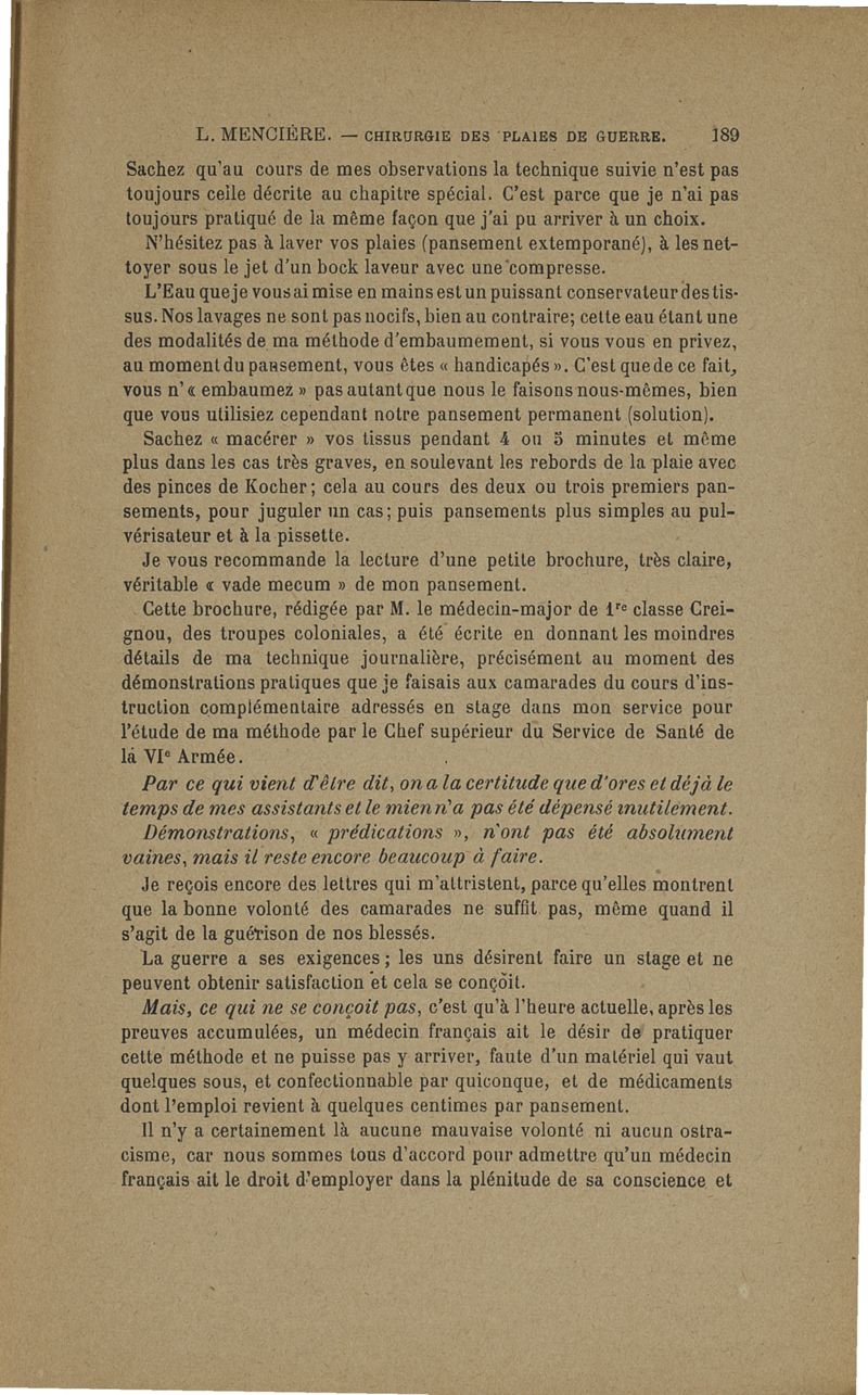 Méthode conservatrice en chirurgie de guerre telle qu'elle découle de la pratique de l'embaumement et de la phénolisation