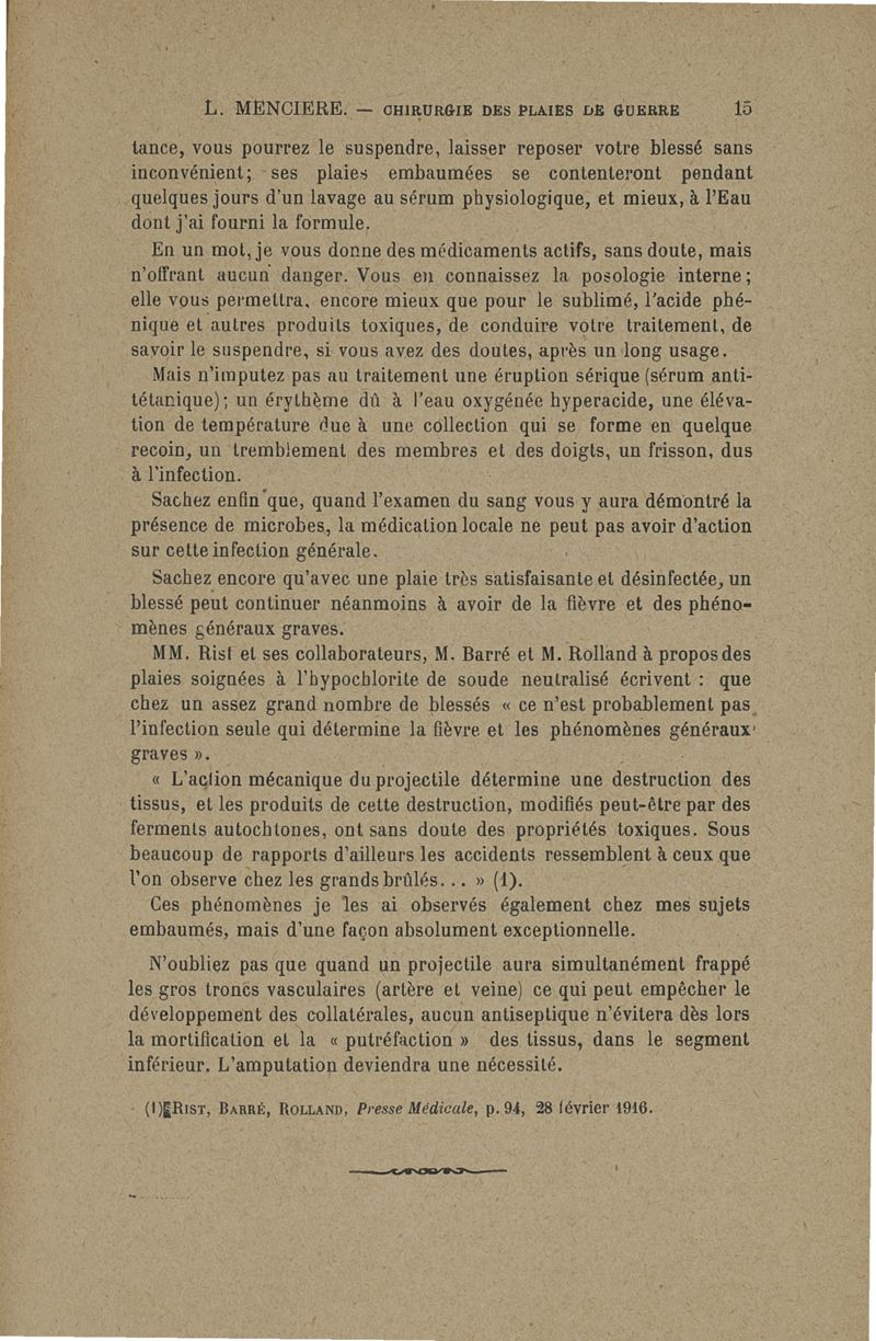 Méthode conservatrice en chirurgie de guerre telle qu'elle découle de la pratique de l'embaumement et de la phénolisation