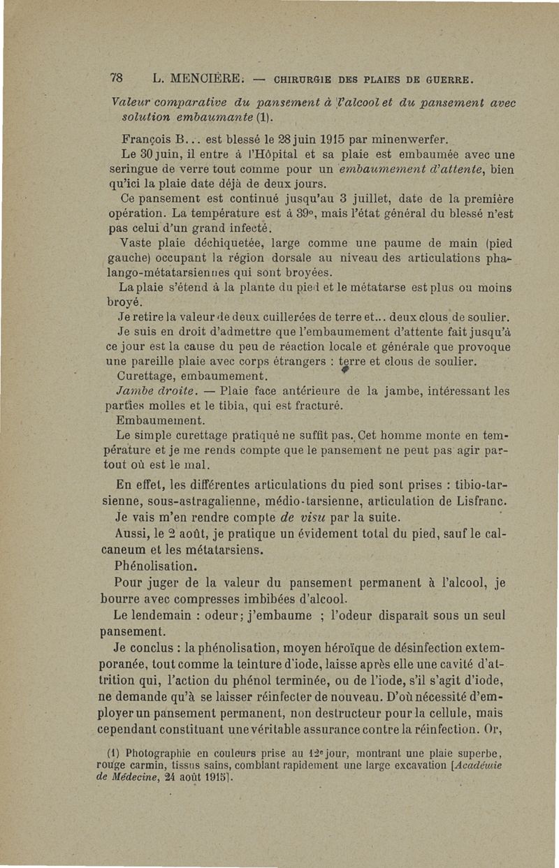 Méthode conservatrice en chirurgie de guerre telle qu'elle découle de la pratique de l'embaumement et de la phénolisation