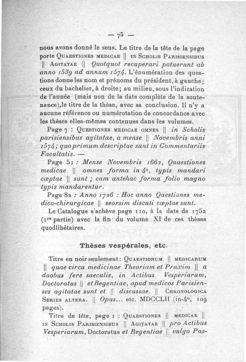 La collection des thèses de l'Ancienne faculté de médecine de Paris depuis 1539 et son catalogue inédit jusqu'en 1793. Documents sur l'histoire de la Faculté pendant la Révolution