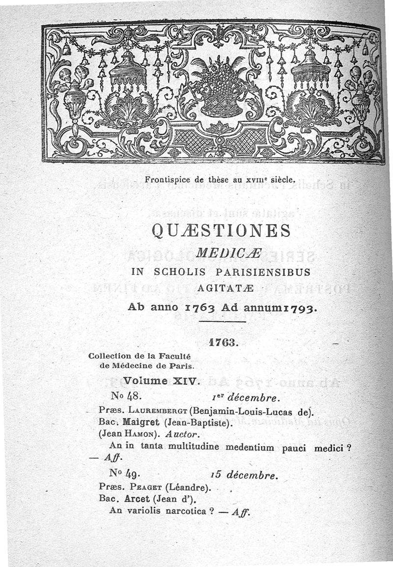 La collection des thèses de l'Ancienne faculté de médecine de Paris depuis 1539 et son catalogue inédit jusqu'en 1793. Documents sur l'histoire de la Faculté pendant la Révolution