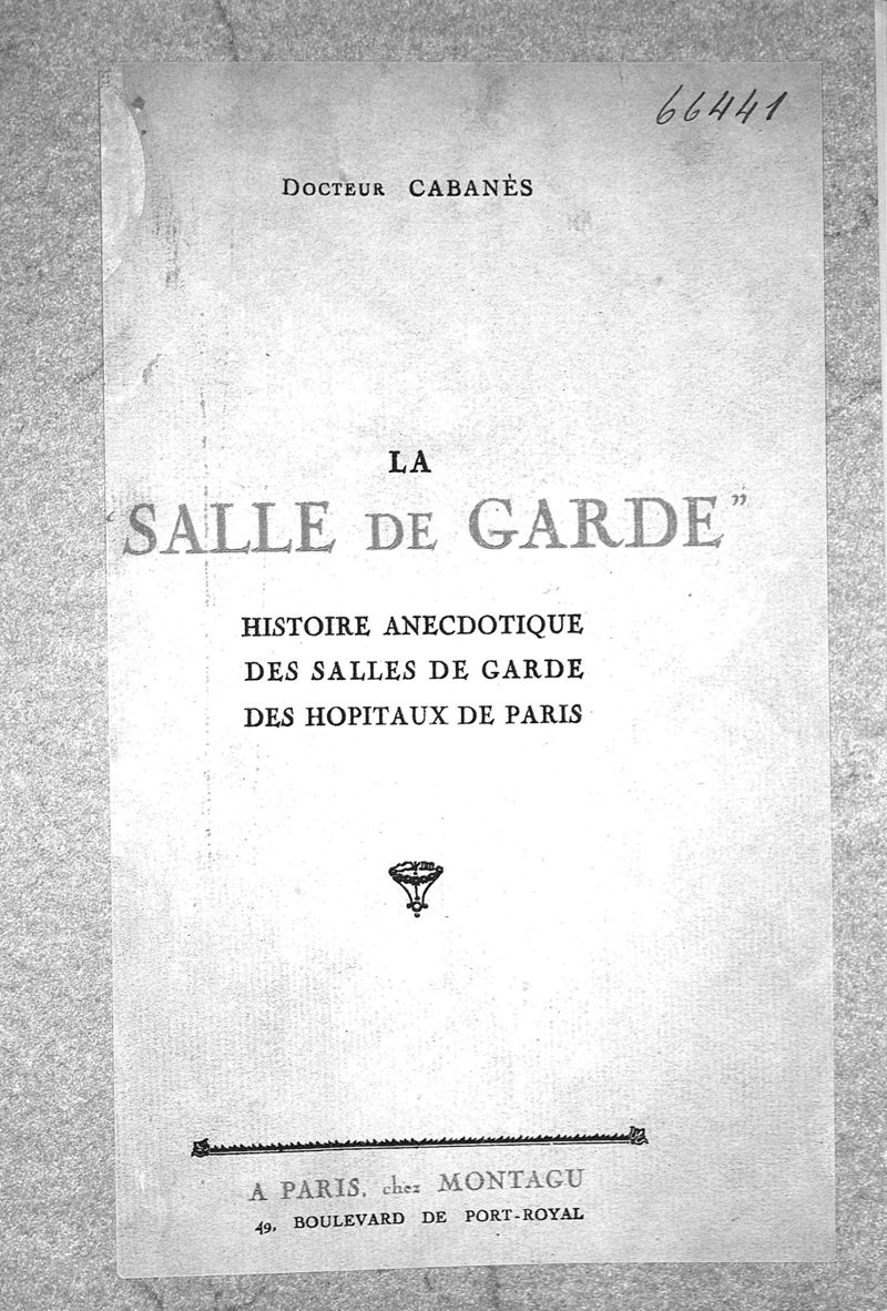 La "salle de garde". Histoire anecdotique des salles de garde des hôpitaux de Paris
