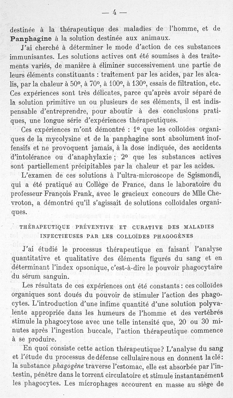 Thérapeutique curative et préventive par les colloïdes phagogènes