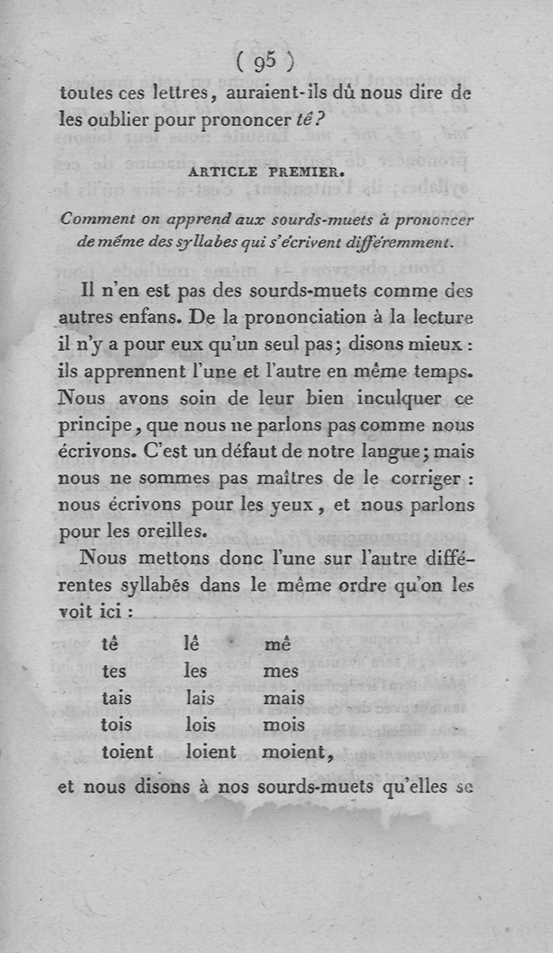 L'art d'enseigner à parler aux sourds-muets de naissance, par M. l'abbé de l'Epée, augmenté de notes explicatives et d'un avant-propos par M. l'abbé Sicard [...] précédé de l'Eloge historique de M. l'abbé de l'Epée par M. Bébian