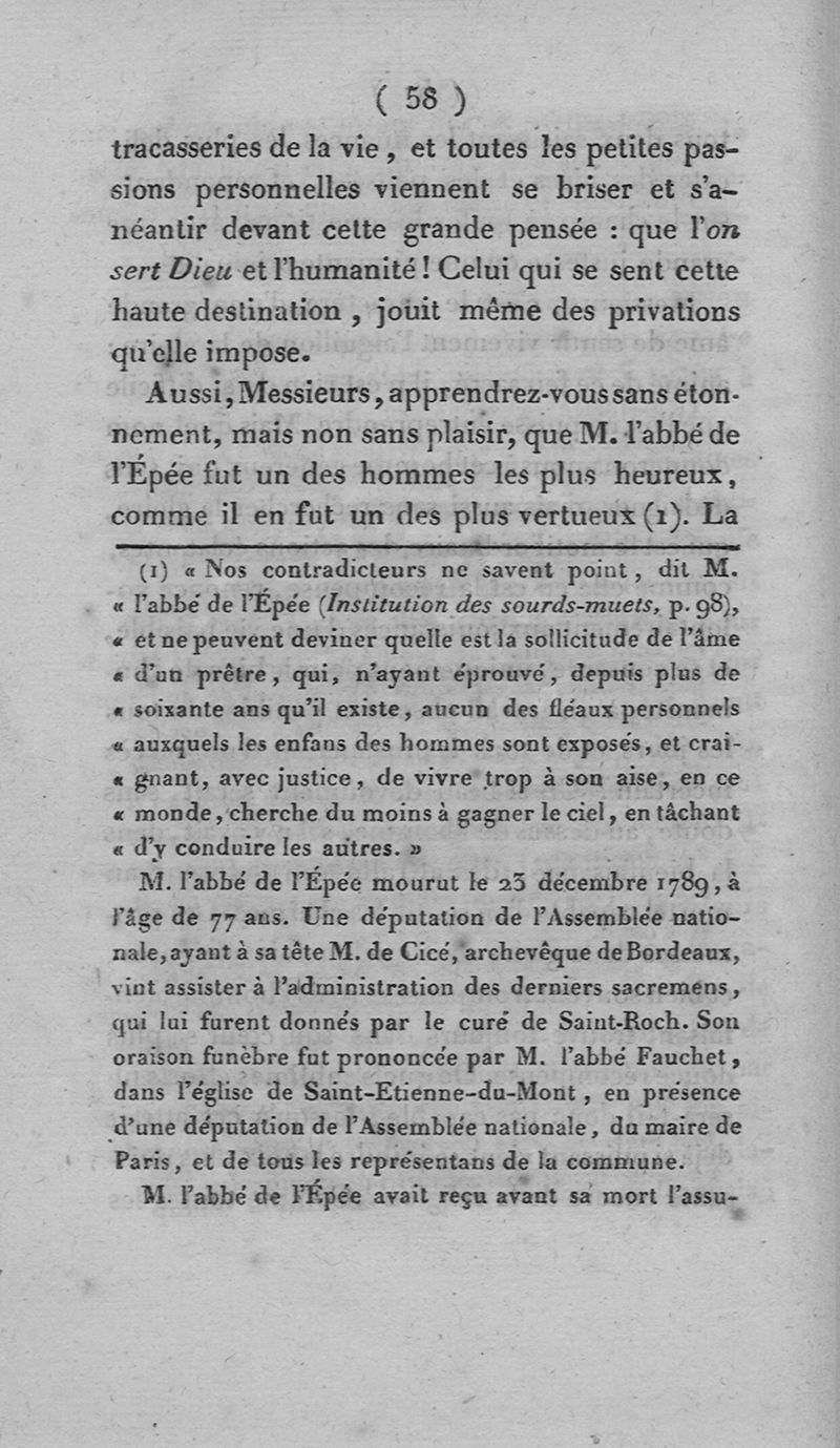 L'art d'enseigner à parler aux sourds-muets de naissance, par M. l'abbé de l'Epée, augmenté de notes explicatives et d'un avant-propos par M. l'abbé Sicard [...] précédé de l'Eloge historique de M. l'abbé de l'Epée par M. Bébian