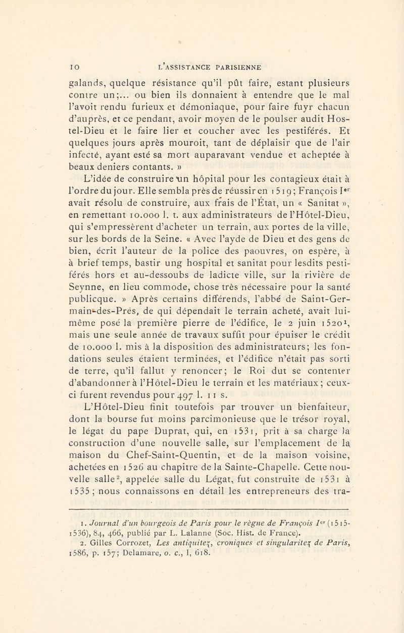 L'Assistance parisienne au milieu du XVIe siècle