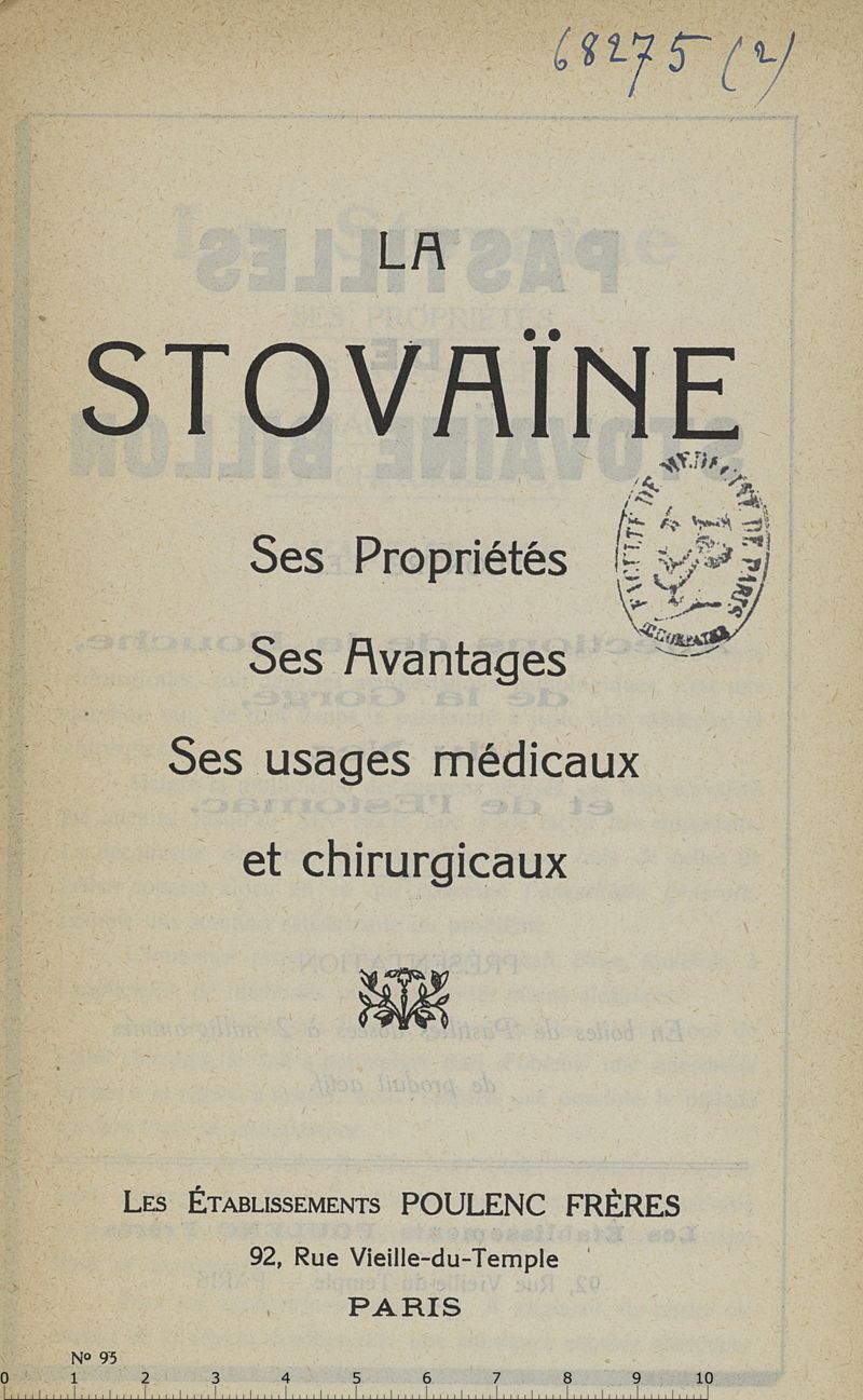 La stovaïne. Ses propriétés, ses avantages, ses usages médicaux et chirurgicaux